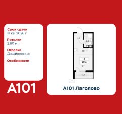 "А101 Лаголово" - современный город у подножия знаменитых Дудерговских высот, в объятиях чистейших озёр и зелёных живописных массивов, наполненный всем необходимым для счастливой жизни.
