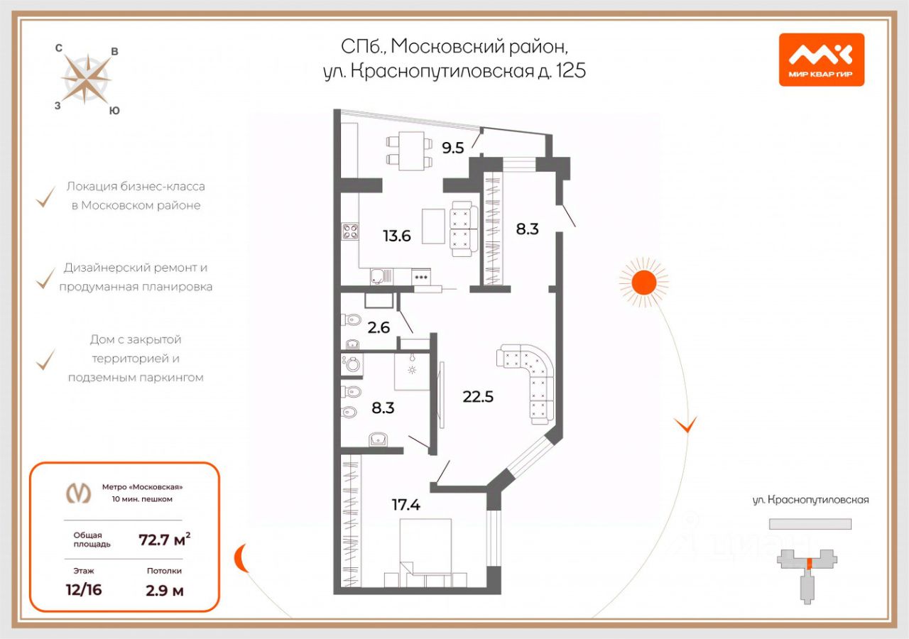 До станции метро "Московская" — 9 минут пешком. Удобные выезды на ЗСД и КАД, дорога до аэропорта Пулково — около 15 минут.