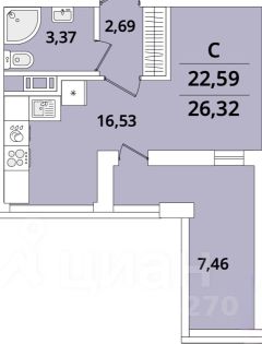 Видовая, эргономичная студия с шикарной лоджией на две стороны.