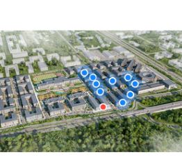 В составе квартала: 30 шестиэтажных домов, школа, 2 детских сада с бассейнами, наземные и подземные паркинги, зеленый бульвар с play hub и местами отдыха.