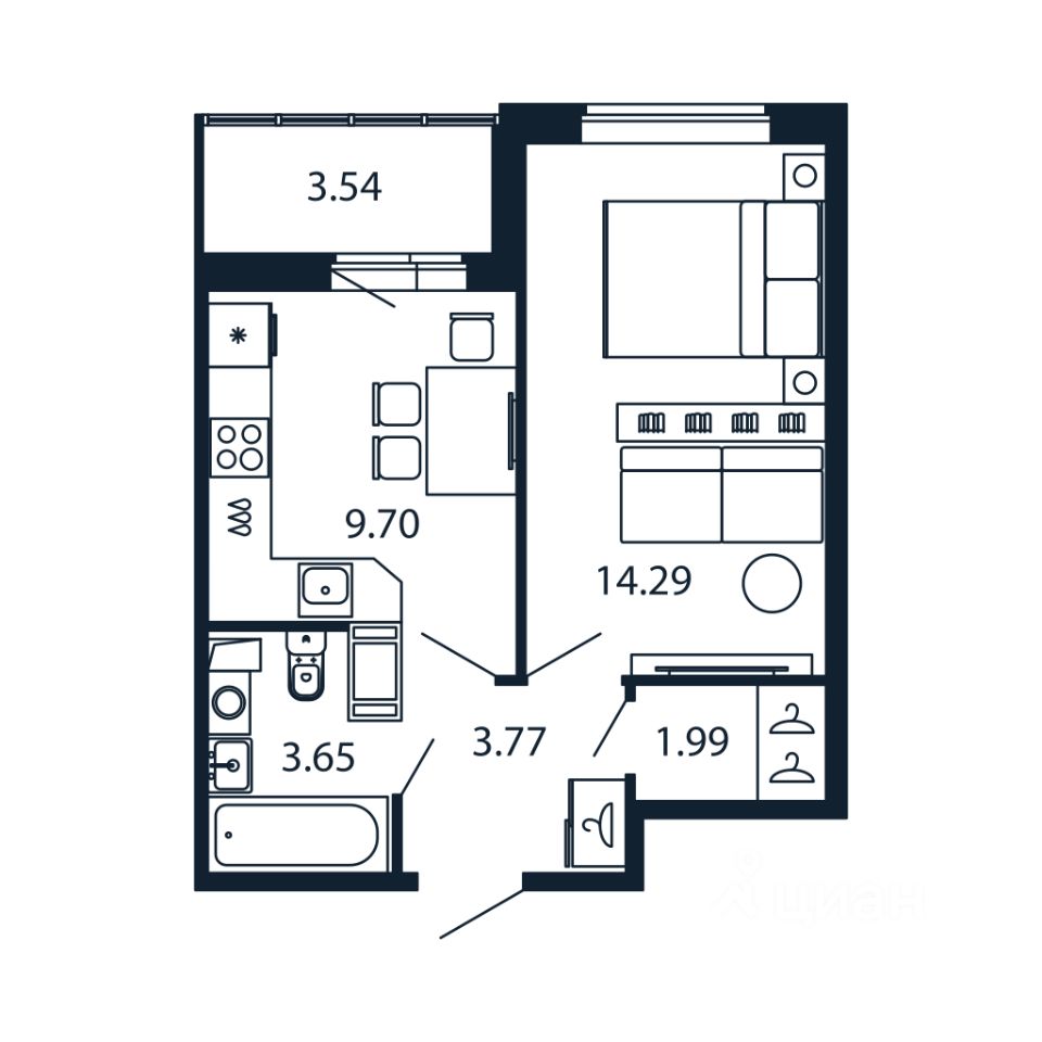 Прямая продажа от застройщика! Готовая Однокомнатная квартира 32.6 кв.м с кухней 9.7 кв.м с предчистовой отделкой на 8 этаже в сданном ЖК "Полис Лаврики".