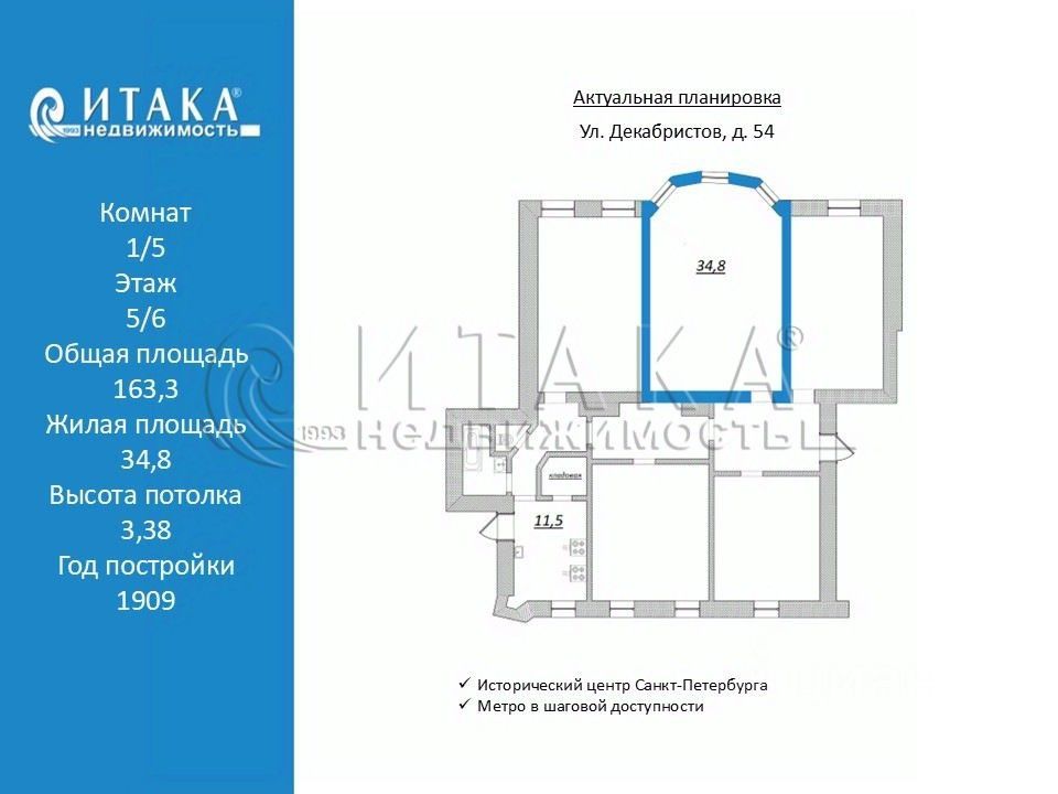 124171096 Самая большая светлая комната в квартире в самом центре Петербурга!