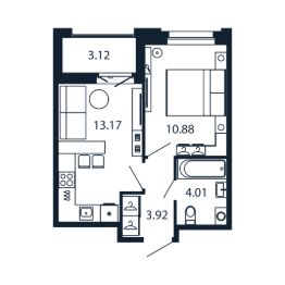 Прямая продажа от застройщика! Готовая Евро-двушка 31.6 кв.м с кухней 13.17 кв.м с чистовой отделкой на 9 этаже в сданном ЖК "Полис Новоселье".