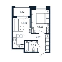 Прямая продажа от застройщика! Готовая Евро-двушка 32.5 кв.м с кухней 13.56 кв.м с предчистовой отделкой на 2 этаже в сданном ЖК "Полис Новоселье".