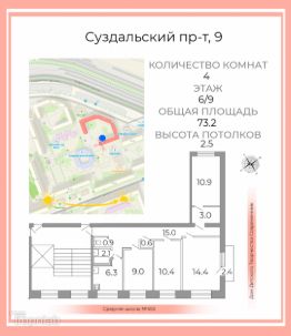 Транспорт: Остановка общественного транспорта в 2 минутах пешком. 10 минут пешком до метро Проспект Просвещения. 10 минут на авто до КАД.