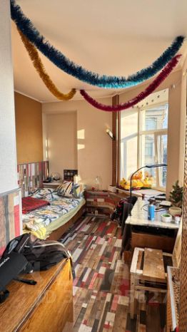 Все общественные места чистые, кухня большая и просторная. Еще есть комната МОП 18 метров, которая используется как комната для хранения вещей.
