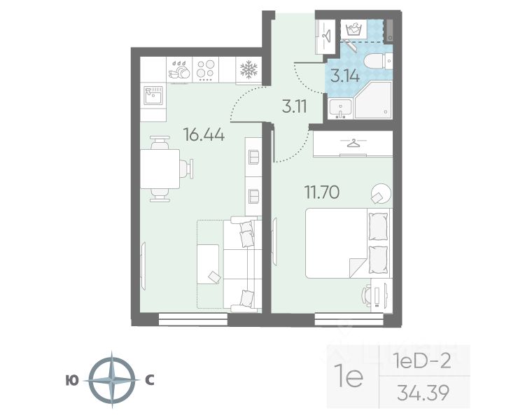 Продается 1-комнатная квартира в ЖК "Морская миля" на 2 этаже. Общая площадь составляет 34.39 кв. м. Квартира с чистовой отделкой. Жилой комплекс "Морская миля" располагается по адресу Санкт-Петербург, Красносельский.