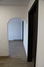 Произведено выравнивание полов в один уровень по всей квартире, выполнена штукатурка стен, новые напольные покрытия (плитка, кварцвинил), пластиковые окна.