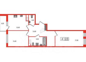Комнаты: раздельные по 13,4кв.м. и 17,6кв.м.