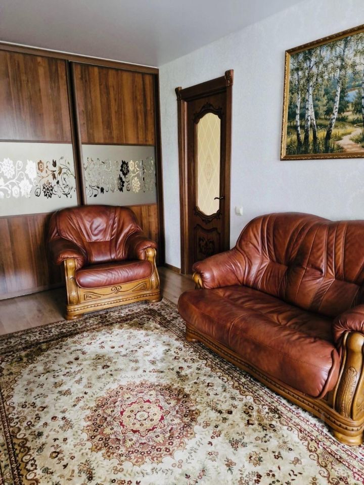В квартире сделан красивый ремонт в классическом стиле из качественных материалов. Двери, кухня, мягкая мебель изготовлены из массива. Много закрытых мест хранения: вместительная гардеробная в спальне, встроенный шкаф в гостиной, хозяйственный блок на балконе. Балкон застеклен стеклопакетами во весь рост. Окна выходят во двор. Под окнами много зелени, поэтому даже жарким летом в квартире всегда прохладно. Приятный вид из всех окон.