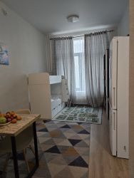 Квартира с качественным ремонтом . Просторная кухня-гостиная позволяет оптимально использовать пространство в нужных целях. Санузел совмещенный, оборудован современной сантехникой. Окна выходят во двор (но не внутренний). В квартире не жарко летом и тепло зимой. Счетчики на электроэнергию, воду, отопление.