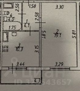 Общая площадь - 41,8 м2: комната - 19,1 м2 кухня - 10,3 м2 санузел совмещённый - 4 м2 коридор - 4.1 м2, балкон 4.3м2