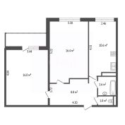 Общая площадь квартиры — 55,5 кв. м, расположена на 4 этаже 12-этажного панельного дома, построенного в 1987 году. Жилая площадь составляет 32 кв. м, кухня — 10,5 кв. м. Высокие потолки 2,65 м, создают ощущение простора.