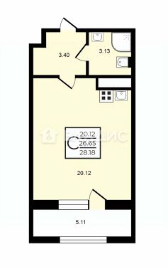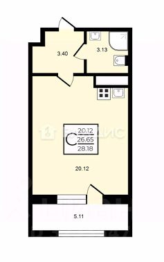 Площадь комнаты 20.1 м, общая площадь 27 метров. Если считать вместе с лоджией то почти 32 квадр метра.