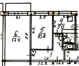 Планировка — две изолированные спальни 17,4 и 10,8 м², кухня 5 м², раздельный санузел, остеклённый балкон. Окна выходят на две стороны — в тихий зелёный двор.