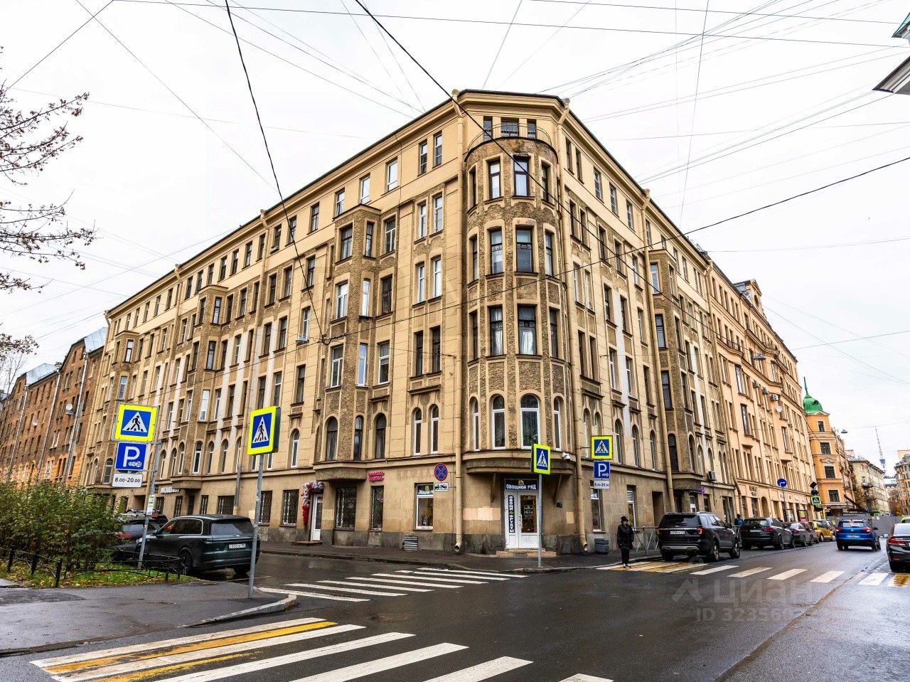 Дом дореволюционной постройки 1912 года, кирпичный, с историей и характером. Та самая архитектура, ради которой любят Петроградку.