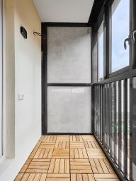 Стильная просторная лоджия, где приятно проводить время и отдыхать.