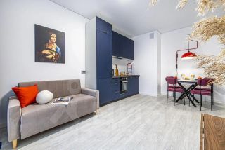 Интерьер выдержан в насыщенный глубоких тонах с акцентами синего, бордового и коричневого цветов, они согревают и дарят удовольствие. Всё продумано до мелочей — заходи и живи сразу после сделки, без единого вложения!