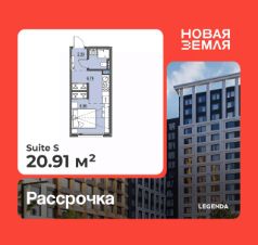 1-комн. квартира-студия с предчистовой отделкой в ЖК "Новая Земля" на 16 этаже. Общая площадь: 20.91 кв.м., площадь гостиной 15.75 кв.м., из которых 6.79 кв.м. выделено под кухонную зону. Все окна выходят на одну сторону. В квартире один совмещенный санузел. Высота потолков 2.85 м.