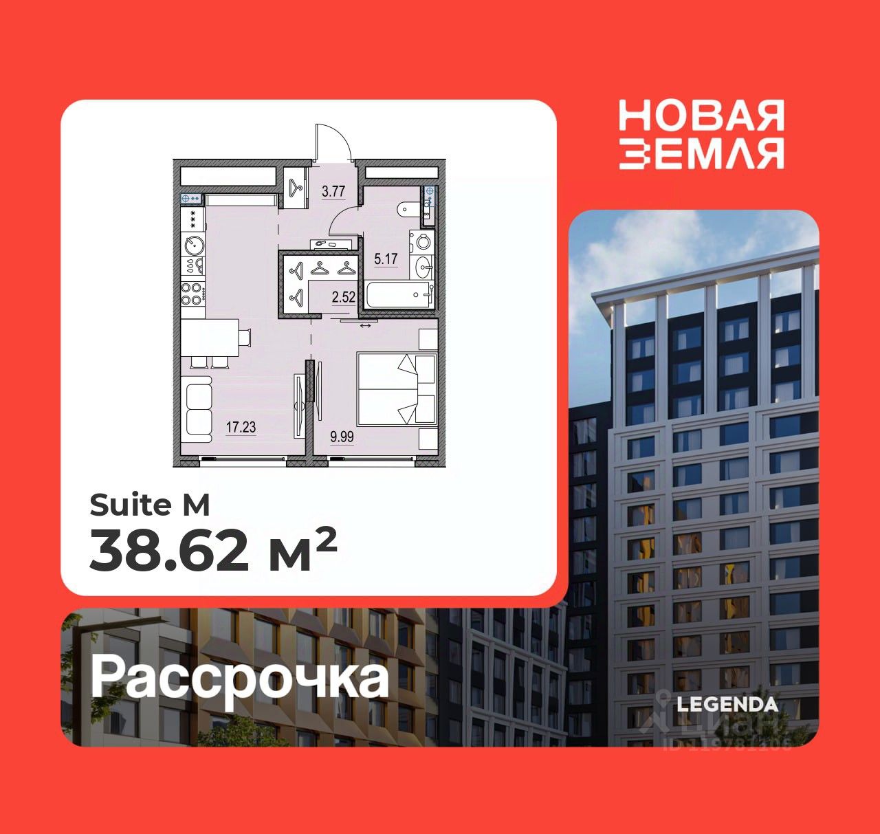 Однокомнатная квартира от застройщика с предчистовой отделкой в ЖК "Новая Земля" на 7 этаже. Общая площадь: 38.62 кв.м., жилая: 9.99 кв.м., площадь просторной кухни-столовой: 17.23 кв.м. Все окна выходят на одну сторону. В квартире один совмещенный санузел. Высота потолков 2.85 м.