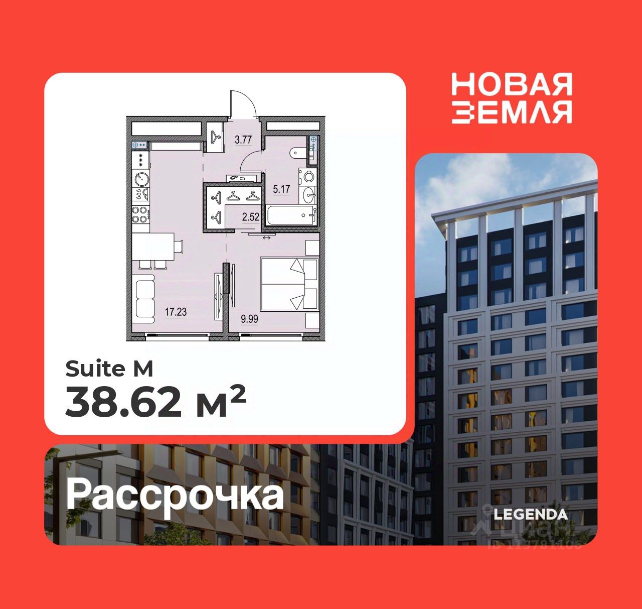 1-комн. квартира от застройщика с предчистовой отделкой в ЖК "Новая Земля" на 5 этаже. Общая площадь: 38.62 кв.м., жилая: 9.99 кв.м., площадь просторной кухни-столовой: 17.23 кв.м. Все окна выходят на одну сторону. В квартире один совмещенный санузел. Высота потолков 2.85 м.