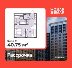 1-комн. квартира с предчистовой отделкой в ЖК "Новая Земля" на 3 этаже. Общая площадь: 40.75 кв.м., жилая: 11.85 кв.м., площадь просторной кухни-столовой: 15.73 кв.м. Все окна выходят на одну сторону. В квартире один совмещенный и один раздельный санузел. Высота потолков 2.85 м.