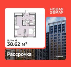 Продается однокомнатная квартира от застройщика с предчистовой отделкой в ЖК "Новая Земля" на 15 этаже. Общая площадь: 38.62 кв.м., жилая: 9.99 кв.м., площадь просторной кухни-столовой: 17.23 кв.м. Все окна выходят на одну сторону. В квартире один совмещенный санузел. Высота потолков 2.85 м.