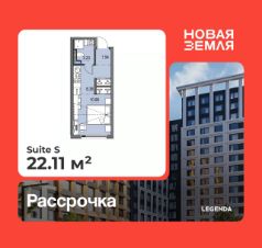 Продается 1-комн. квартира-студия от застройщика с предчистовой отделкой в ЖК "Новая Земля" на 3 этаже. Общая площадь: 22.11 кв.м., площадь гостиной 17.34 кв.м., из которых 6.36 кв.м. выделено под кухонную зону. Все окна выходят на одну сторону. В квартире один совмещенный санузел. Высота потолков 2.85 м.