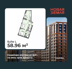 Просторная 2-комн. квартира с предчистовой отделкой в ЖК "Новая Земля" на 3 этаже. Общая площадь: 58.96 кв.м., жилая: 26.56 кв.м., площадь просторной кухни-столовой: 19.8 кв.м. Квартира угловая, очень светлая, естественная вентиляция при открытии окон. В квартире два совмещенных санузла. Высота потолков 2.85 м.