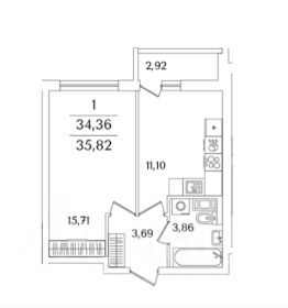 Продается уютная однокомнатная квартира площадью 35.82 кв. м в современном монолитном доме 2025 года постройки. Она расположена на 4 этаже 17-этажного здания. Высота потолков составляет 2.7 метра, что придает ощущение простора. Всего в доме 1 пассажирский и 2 грузовых лифта, поэтому можно легко и быстро добраться до квартиры.