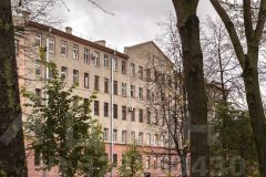 Кирпичный дом со смешанными перекрытиями (Железные балки с деревянным наполнением), широкими стенами и высокими потолками (3,2 м.) построен в 1912 г. в актуальном для того времени неоклассическом стиле по проекту архитектора В. Голубина. В доме чистые парадные, вход в которые с фасада (Не со двора), установлен лифт.