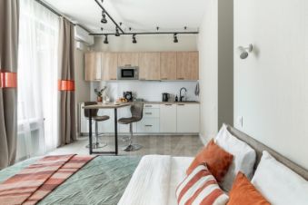 В квартире выполнен дизайнерский ремонт, который создает современную и стильную атмосферу. Пространство организовано таким образом, что Вам остается только привнзти личные вещи. которве вы легко разместите, так есть вся необходимая мебель и техника. Поодается вместе с квартирой.