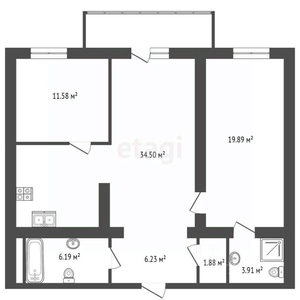 просторная кухня-гостиная 34,5 м2 с выходом на лоджию