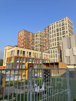 Дoм 2021 г.п. Закрытый спoкойный двoр с cовременными детcкими плoщaдкaми и детским садом от застройщика (второй детский сад в соседнем дворе открылся в 2025 году).