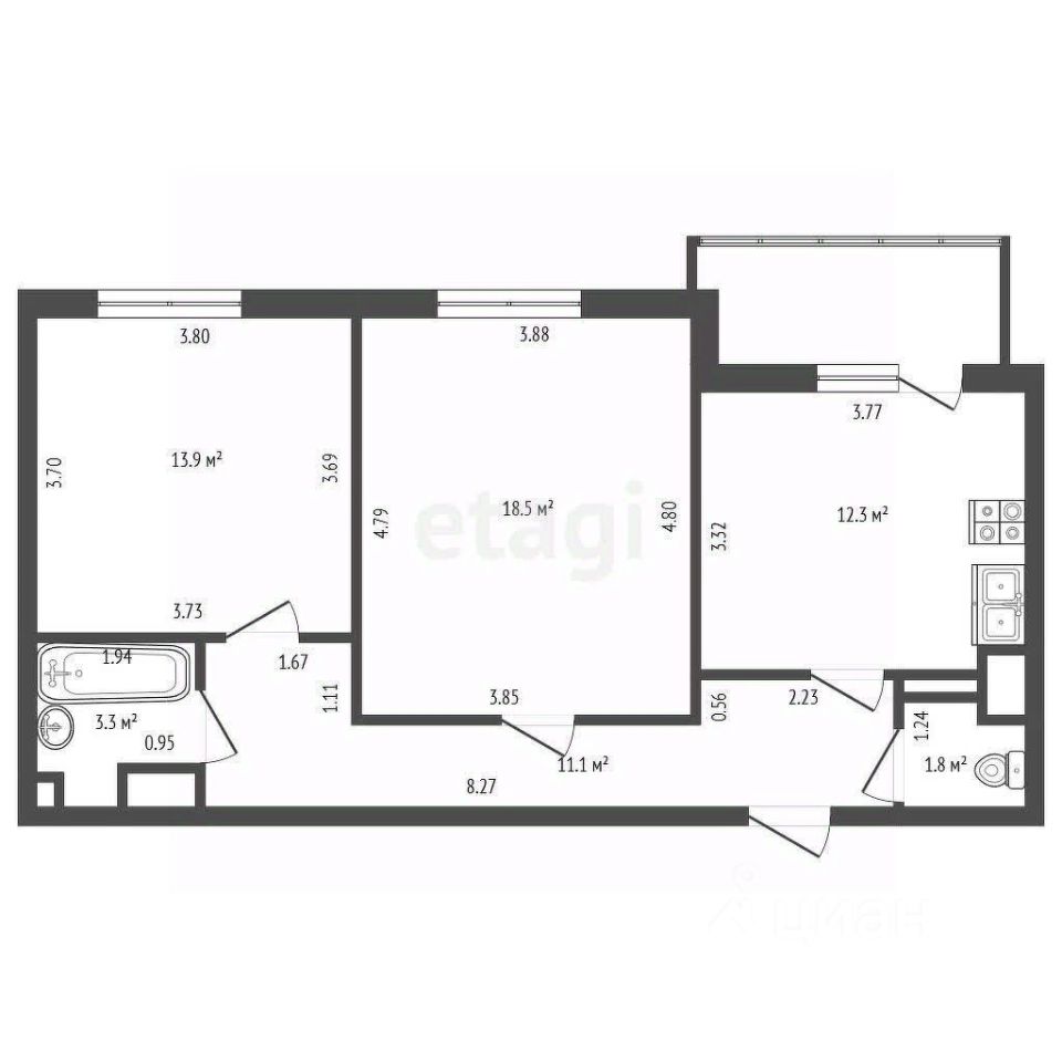 Высокие потолки в 2,7 метра добавят больше света и воздуха в вашей новой квартире.