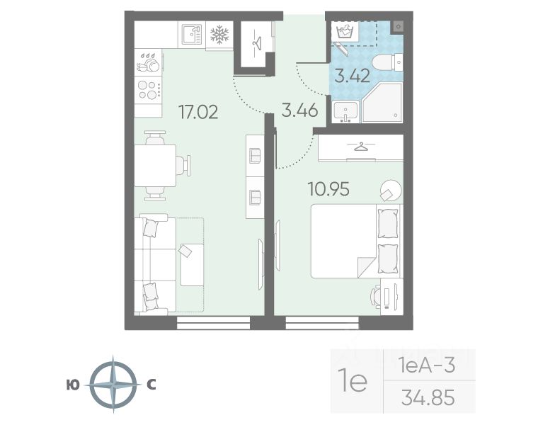 Продается 1-комнатная квартира в ЖК "Морская миля" на 2 этаже. Общая площадь составляет 34.85 кв. м. Квартира с чистовой отделкой. Жилой комплекс "Морская миля" располагается по адресу Санкт-Петербург, Красносельский.