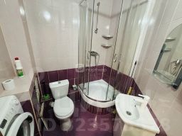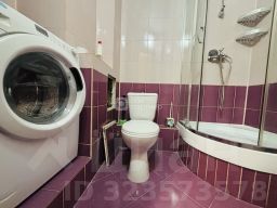 Ванная с туалетом совмещены, но просторная зона вместила в себя и стиральную машинку и душевую кабину и осталось место спокойно надеть халатик и тапочки после душа.