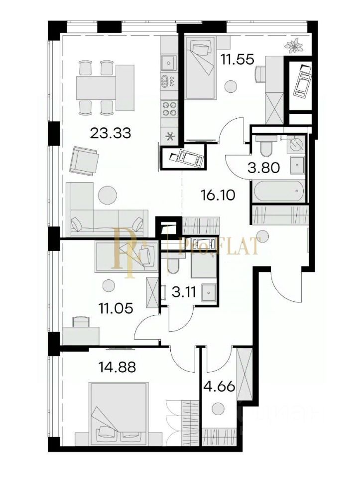 Внутри вас ждет изысканный ремонт, выполненный с использованием качественных материалов, а грамотное зонирование позволяет максимально эффективно использовать пространство.