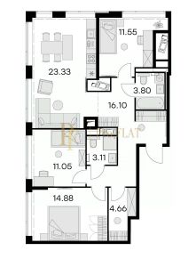 Большое жилое пространство идеально подойдёт для комфортного отдыха и работы, а большая гардеробная обеспечит порядок и удобство хранения вещей.