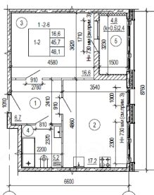 Общая площадь без лоджии 45.5 м2, лоджия 4.8 м2.
