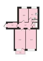 - Три большие комнаты общей жилой площадью 46,2 кв.метра