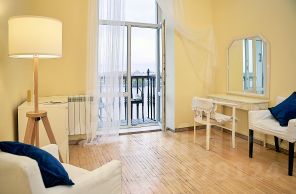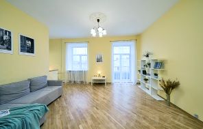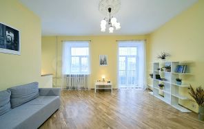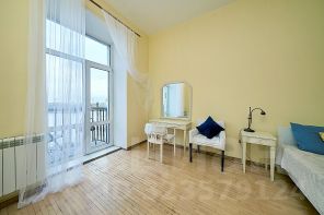Две изолированные спальни + балкон с панорамным видом на Неву и Петровский остров.
