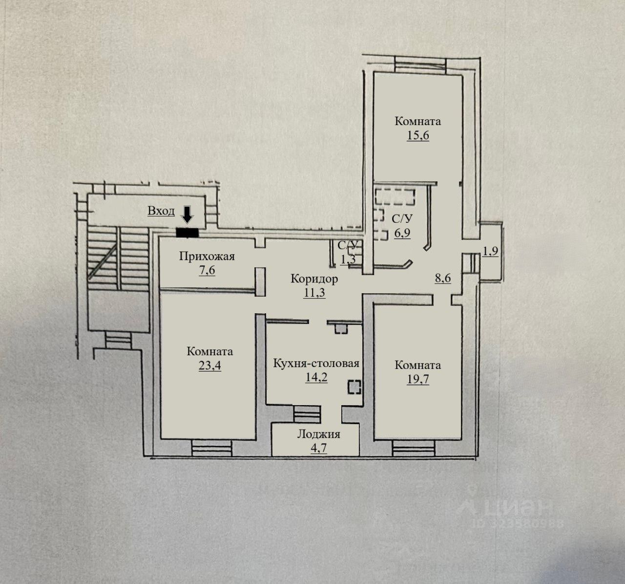Планировка квартиры удобная и функциональная: вместительная прихожая прямоугольной формы с гардеробом(7.6 кв.м); уютная кухня-столовая, оснащенная мебелью и бытовой техникой, с собственным выходом на лоджию (14.2 кв.м+4,7 кв.м); три изолированные комнаты (23,4, 19,7 и 15,6 кв.м); два санузла, где установлен водогрей (1,3 и 6,9 кв.м) и уютный балкон во внутренний зеленый двор (1.9 кв.м). В квартире есть все необходимое для комфортного проживания. По согласованию с собственником бытовая техника может остаться новому владельцу.