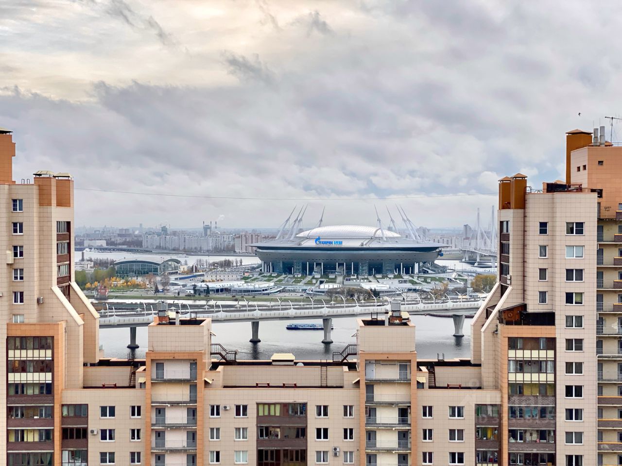 Изначально это была веранда. Когда делали ремонт в квартире - полностью поменяли остекление и сделали тёплые полы. В итоге получилась полноценная жилая тёплая комната с панорамными окнами и видом на Газпром Арену.