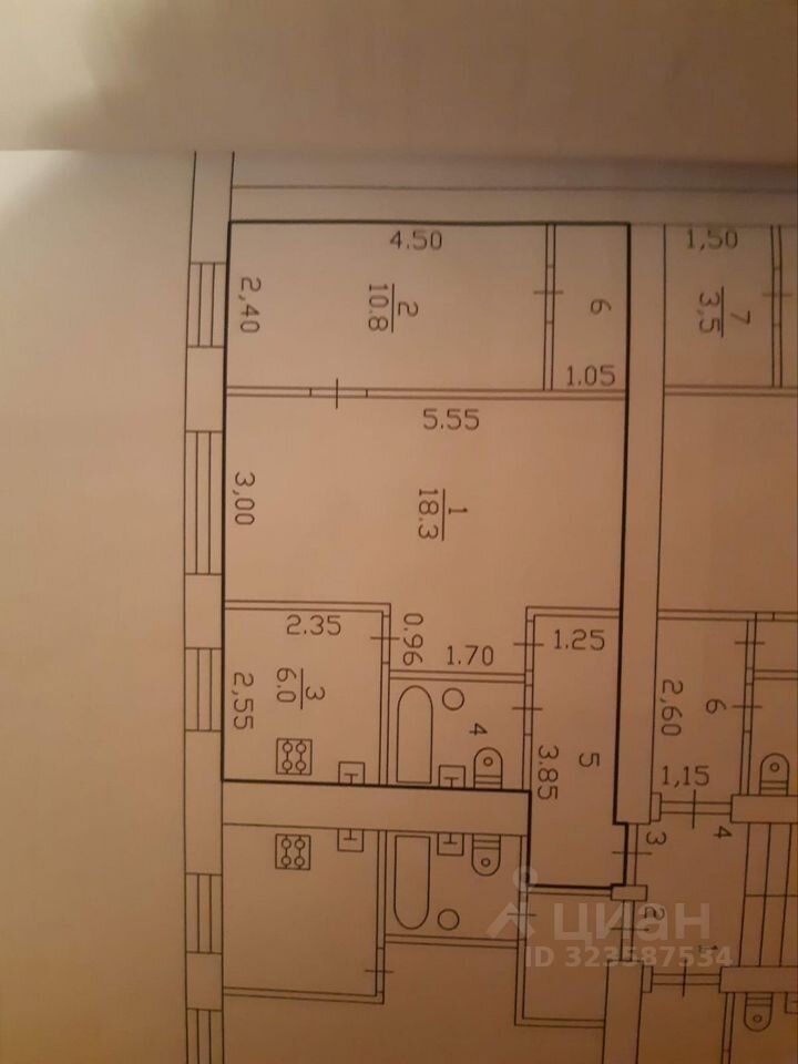 Комнаты проходные, кухня 6 кв.м., сан. узел совмещённый. Нужен ремонт.