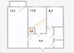 Квартира компактная, с функциональной планировкой. Общая площадь 46,4 м2. плюс застекленный балкон. Все помещения правильной формы. Кухня 8,7 м2, комната 17,8 м2 с выходом на балкон, и 11м2 . Раздельный санузел.