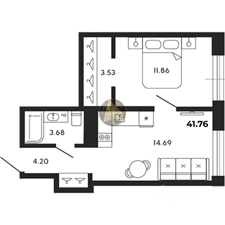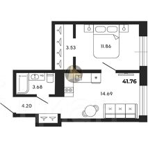 Квартира находится на 4/8 этаже. Общая площадь квартиры 41,76 м2.