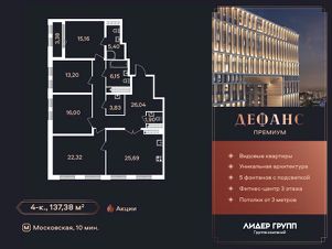 ЖК "Дефанс Премиум". Строительство завершено. Дом получил заключение о соответствии и готовится к вводу! Это проект авторской архитектуры с уникальными форматами квартир в 10 минутах ходьбы от станции метро "Московская". Дом выполнен в виде двух 23-х этажных арок, основания которых объединены единым внутренним пространством с большой парадной лестницей, променадом и большим фонтанным комплексом с подсветкой. В составе проекта построен большой фитнес-центр с бассейнами и зоной СПА. Часть квартир отделена от остальных жилых этажей специальным техническим этажом — это снимает все ограничения по перепланировке. Для части квартир предусмотрены индивидуальные входные группы и дополнительные лифты премиального немецкого бренда Tyssen Krupp (TKE). Фасады, облицованные испанской керамикой и алюминиевые панорамные окна с энергоэффективными стеклами AGС Energy подчеркивают высокий статус дома. На квартиры ЗПИФ и переуступки семейная ипотека не распространяется!