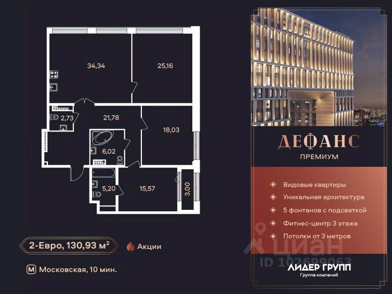 ЖК "Дефанс Премиум". Строительство завершено. Дом получил заключение о соответствии и готовится к вводу! Это проект авторской архитектуры с уникальными форматами квартир в 10 минутах ходьбы от станции метро "Московская". Дом выполнен в виде двух 23-х этажных арок, основания которых объединены единым внутренним пространством с большой парадной лестницей, променадом и большим фонтанным комплексом с подсветкой. В составе проекта построен большой фитнес-центр с бассейнами и зоной СПА. Часть квартир отделена от остальных жилых этажей специальным техническим этажом — это снимает все ограничения по перепланировке. Для части квартир предусмотрены индивидуальные входные группы и дополнительные лифты премиального немецкого бренда Tyssen Krupp (TKE). Фасады, облицованные испанской керамикой и алюминиевые панорамные окна с энергоэффективными стеклами AGС Energy подчеркивают высокий статус дома. На квартиры ЗПИФ и переуступки семейная ипотека не распространяется!