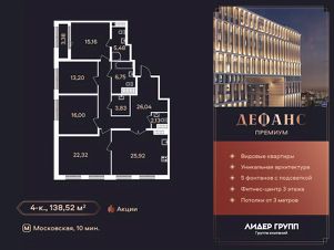 ЖК "Дефанс Премиум". Строительство завершено. Дом получил заключение о соответствии и готовится к вводу! Это проект авторской архитектуры с уникальными форматами квартир в 10 минутах ходьбы от станции метро "Московская". Дом выполнен в виде двух 23-х этажных арок, основания которых объединены единым внутренним пространством с большой парадной лестницей, променадом и большим фонтанным комплексом с подсветкой. В составе проекта построен большой фитнес-центр с бассейнами и зоной СПА. Часть квартир отделена от остальных жилых этажей специальным техническим этажом — это снимает все ограничения по перепланировке. Для части квартир предусмотрены индивидуальные входные группы и дополнительные лифты премиального немецкого бренда Tyssen Krupp (TKE). Фасады, облицованные испанской керамикой и алюминиевые панорамные окна с энергоэффективными стеклами AGС Energy подчеркивают высокий статус дома. На квартиры ЗПИФ и переуступки семейная ипотека не распространяется!